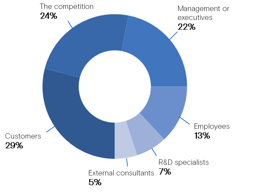 Almost one third of respondents indicated that those who drive them to innovate were not the research and development (“R&D”) specialists nor the external consultants, but the customers (29%) and the competition (24%).