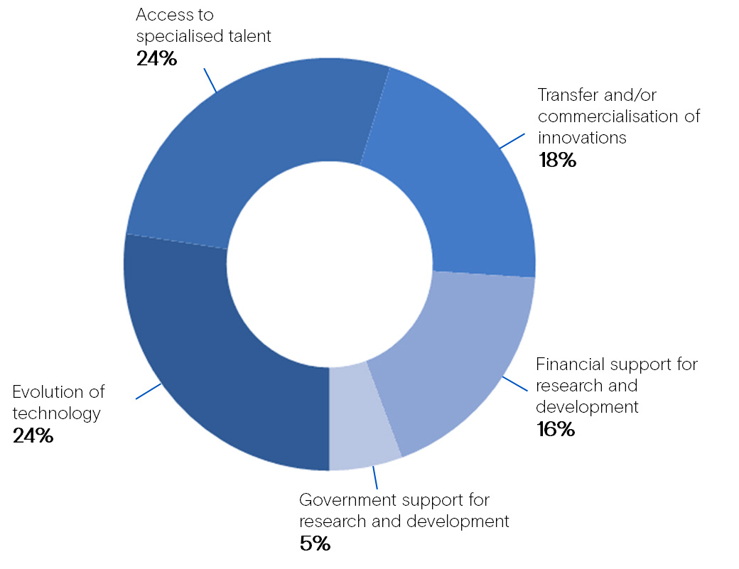 Close to a quarter of respondents believe that the main challenge in innovation is the technologies’ unbridled evolution and the limited access to specialized talent.